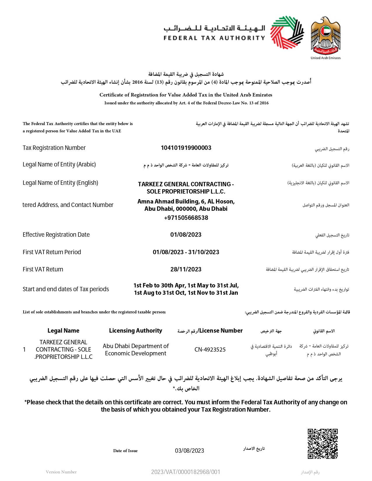 VAT Certificate